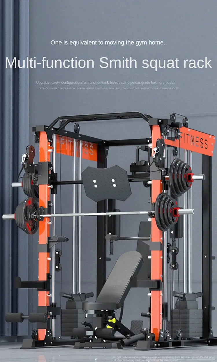 • All-in-One Gym Station – Combines squat rack, Smith machine, and frame trainer in one powerful unit.